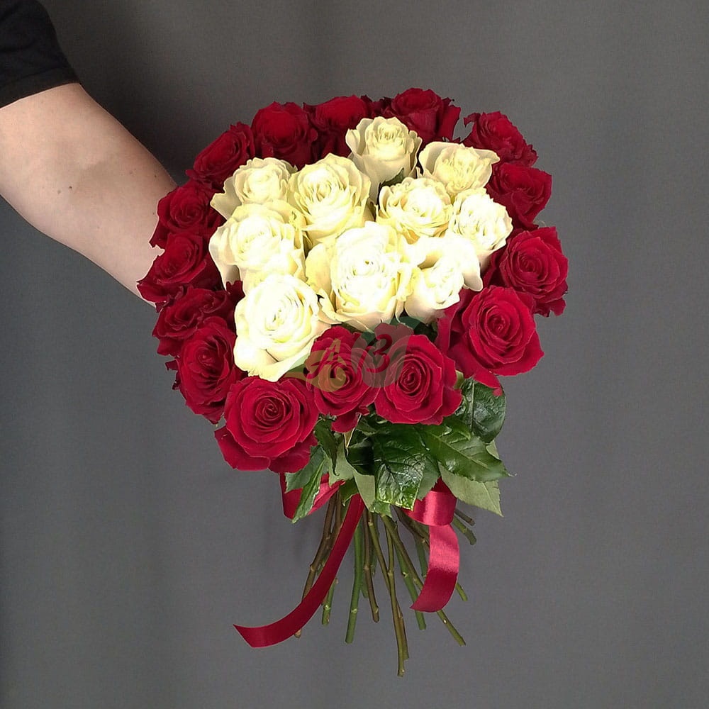 Всего пара кликов и букет из 25 белых и красных роз будет доставлен по нужному вам адресу.
